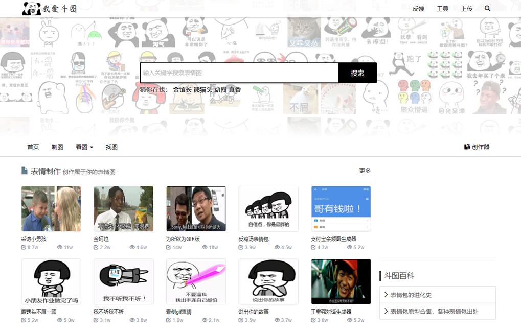 我爱斗图是一个在线表情包制作网站,这里有各式各样的表情模板,还有大量的成品表情图, 可以找到当今最流行的斗图表情包图片,感兴趣的朋友们可以尝试一下。