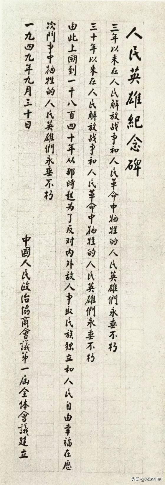 为了表现自己的诚意,刘开渠按照碑身的大小比例,打了一张带有格子的纸张送到周总理手中。言外之意是让周总理写出工整的、大小一致的字体。