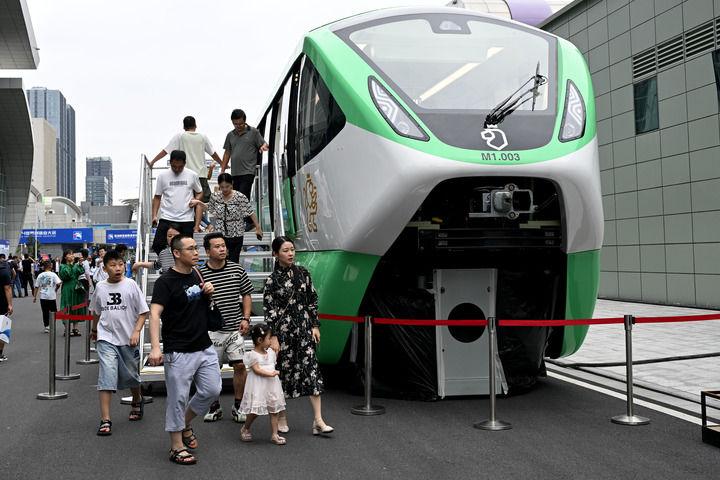 9月21日,在2024世界制造业大会上,人们参观体验阿尔斯通跨座式单轨列车。新华社记者 黄博涵 摄