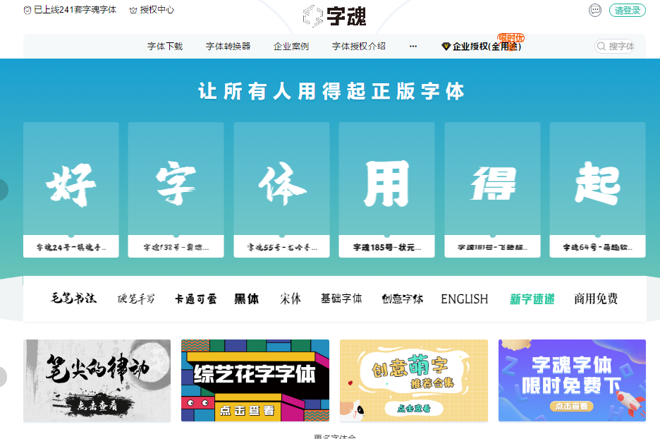 这是一个提供正版字体授权、免费字体下载、字体转换的网站,它希望可以做到让所有人用得起正版字体,详细的字体授权在网站上会有具体的介绍。