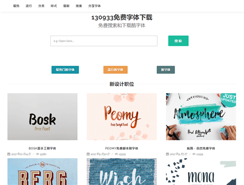 这是一个拥有非常多字体的网站,在里面我们可以看到非常多好看的字体。最重要的是在网站中有一个专门的免费字体分类,我们就可以在里面找到自己喜欢的无版权、好看的字体了。