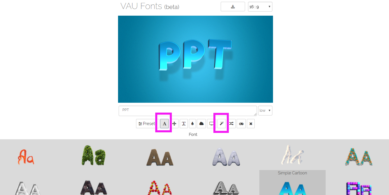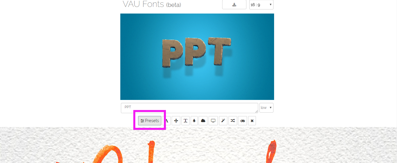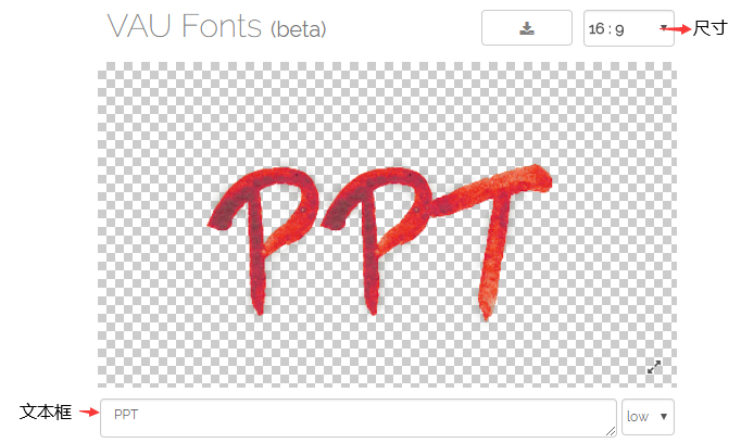 我们需要将自己要设置艺术字体的文本,打在网页的文本框中,然后将预览区的尺寸调整成PPT大小的尺寸,这里我们先设置成16:9。
