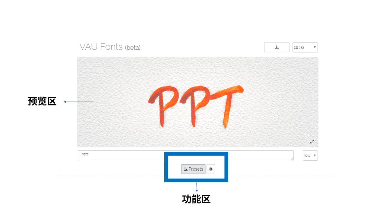 整个网站的界面都非常的简单,可以分为功能区域,和预览区域: