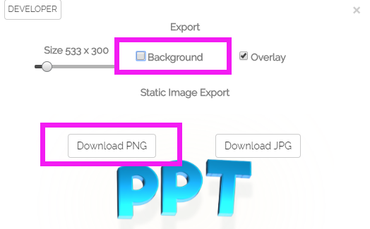 大多数的时候,都是需要没有背景的PNG格式,因为它可以直接插入到PPT中,使用比较方便。所以,下载PNG格式的时候,一定要记得先把 Background 勾掉,再点击 Download PNG 。