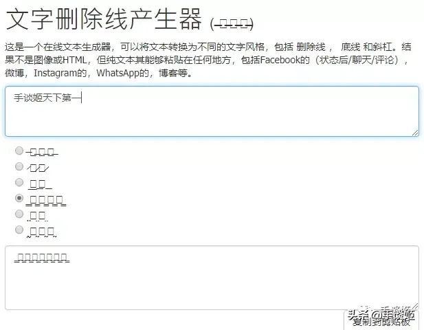 能把文字转换成带删除线、底线和斜杠等不同风格的纯文字,不过姬输入中文的时候显示的全是方框。