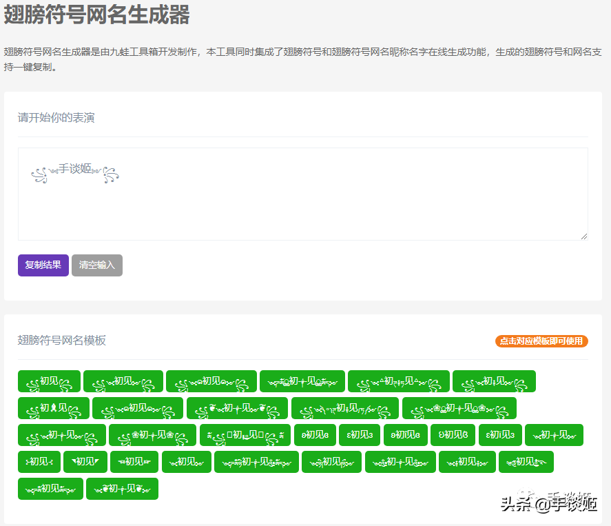 在输入文字的基础上生成下划线、花边以及翅膀,姬用电脑浏览器输入的中文同样生成了一堆方框,但是手机上看是正常的。