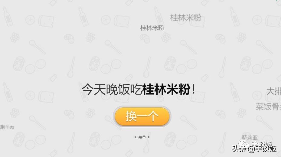 随机生产一个选项,决定今天晚饭吃什么菜。要是放在平时,这个网页可以说是相当实用,简直就是选择困难症患者的福音,完美解决不知道吃啥的问题。