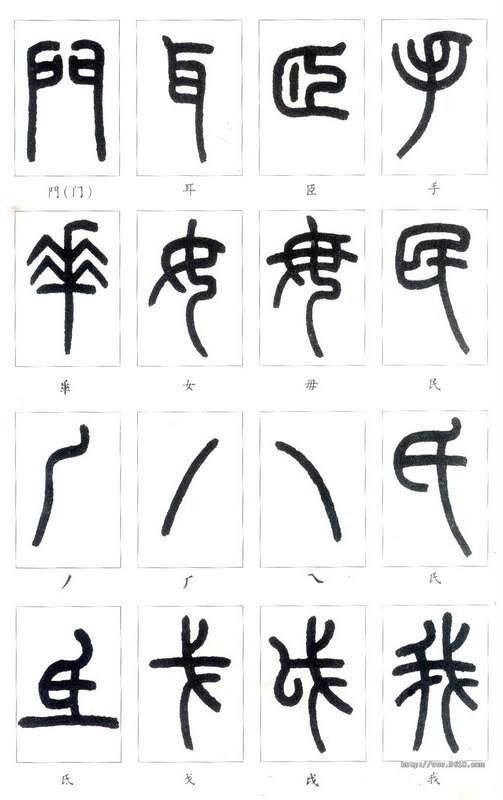 大多数人只熟悉简体字,至于它是由什么繁体字简化而来并不知道。这对于学认篆字来说,困难是会大一些。我在附录一中,列出了部分常见简化字部首与篆字的对应关系,也许能减轻你学认篆字的困难。