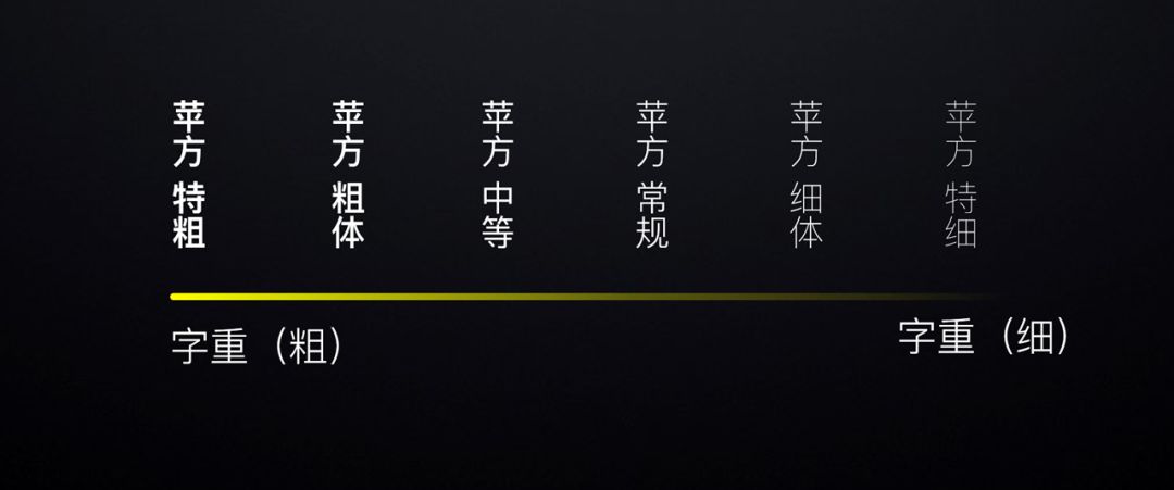 喜欢它的简洁,一笔一划非常清晰,而且有6种不同字重的字体,苹方常规适合作为正文,苹方特粗适合小标题。