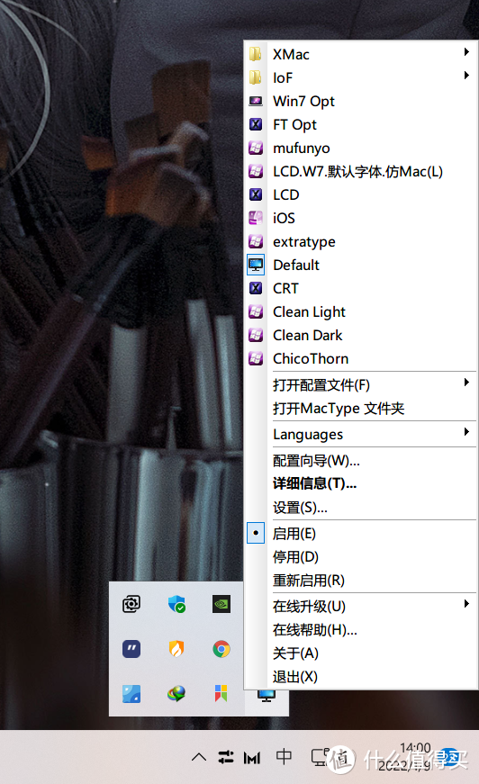 我们还可以点击右下角任务栏中的MacType图标对它进行一些更多的设置。