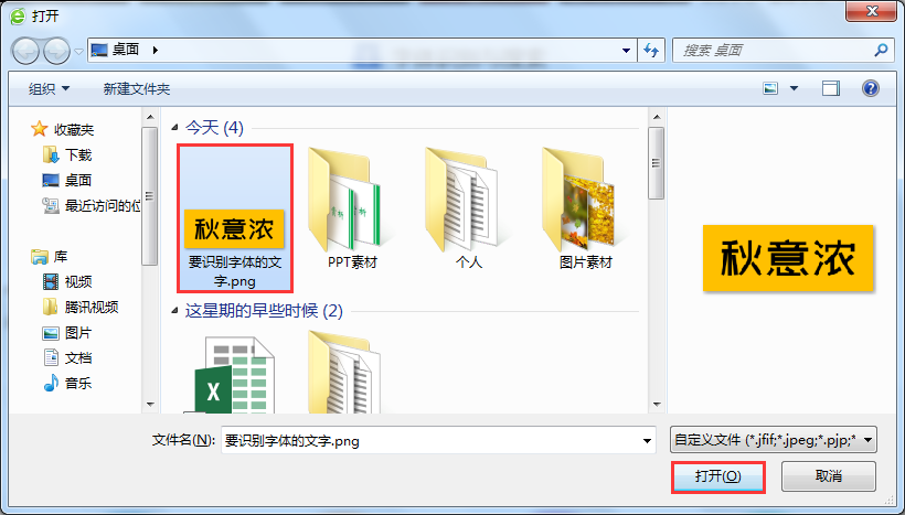 下图为我们要识别字体的文字截图,接下来我们看一下怎样快速识别图片中"秋意浓"三个文字所用的字体。