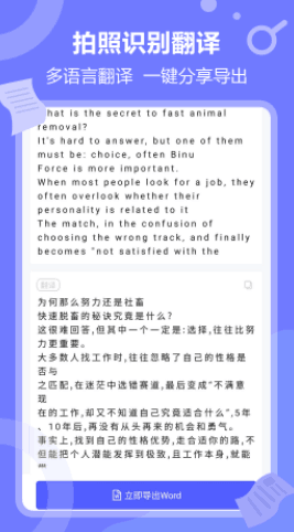 1、首先用户们需要在手机中安装这款软件,支持纸上的文字识别与笔记字迹识别,多格表格也可以轻松提取数字与文字。还有特色翻译拍图识字,可以选择扫描中英文件,然后导出双语文章,方便你再次排版。