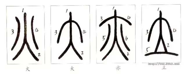 对于有中心长弧(一般为撇、捺笔)的篆字,应先从中间长弧写起,再写左右对称的笔画。