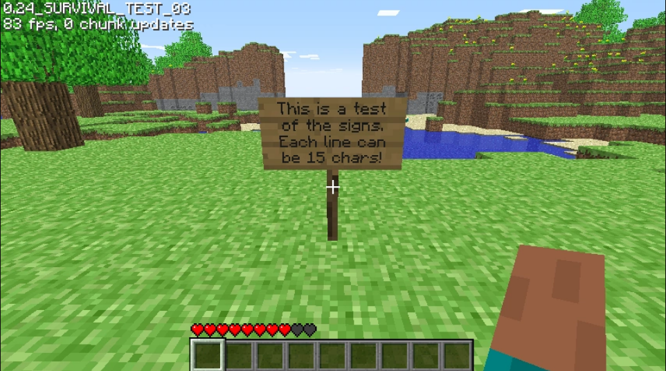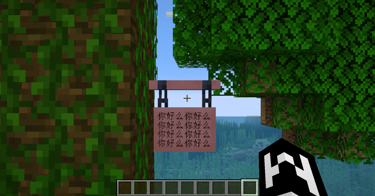 1、就像Kingbdogz说那样,1.20最新快照23w14a中让悬挂式告示牌可容纳的文字变得更多,经过测试目前文字数量为24个,一共可以写四行,每行为6个汉字。而普通的告示牌可以写下40个汉字。