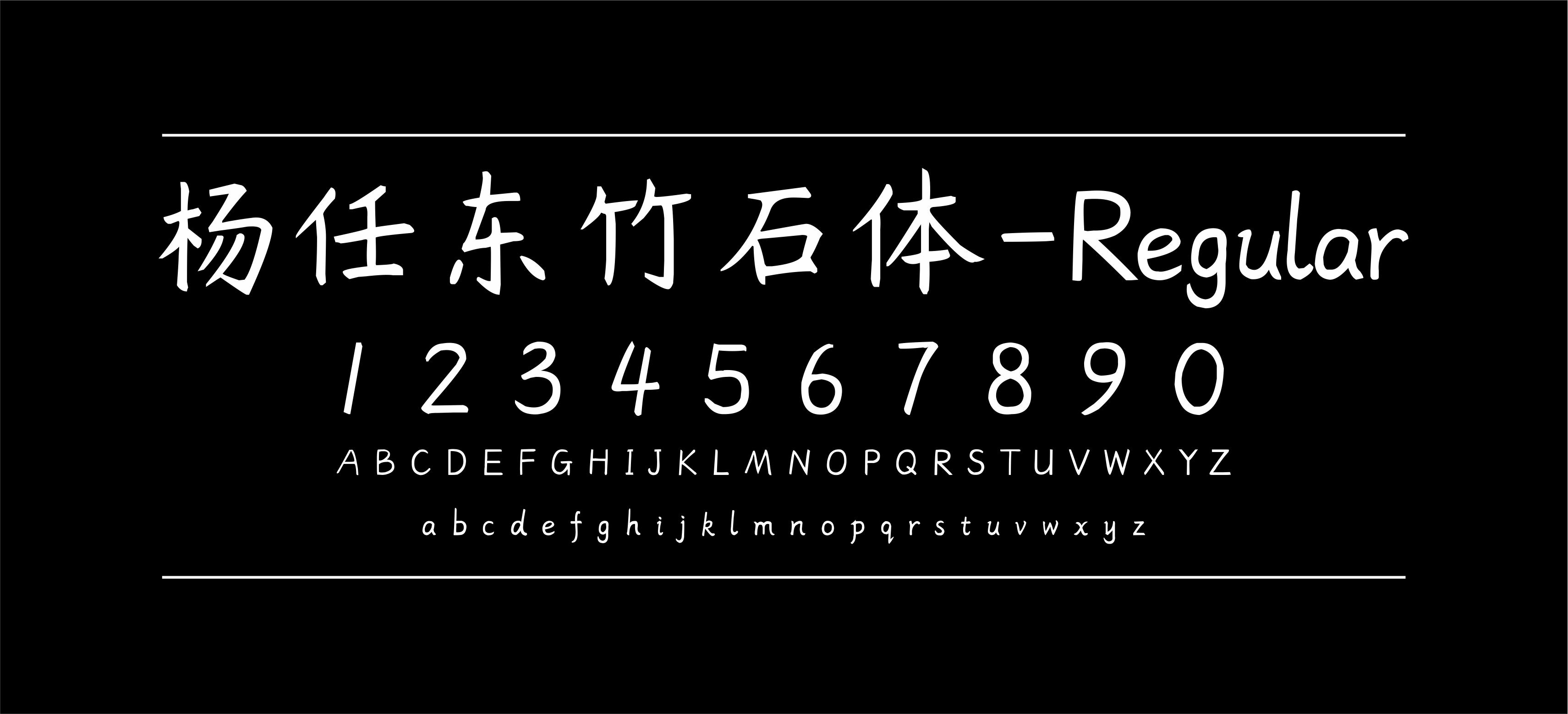 杨任东竹石体是一款可商用的手写字体,字体整体简洁明了,大方,支持中文简体、英文字母、数字符号等格式,适合应用与艺术设计、平面宣传设计、网页设计、书籍印刷等领域。杨任东竹石体于 2017 年 4 月 26 日世界知识产权日正式发布,字体按照 GB2312-80 书写,并增补了少量常见汉字,单个 ttf 格式字体文件包括 7311 个字符,涵盖了日常生活用字 99.8% 的需求;整套字体有 7 个字重,共计 50000 余个字符。