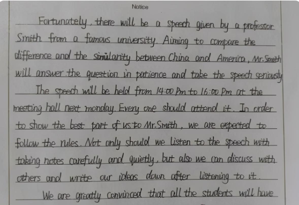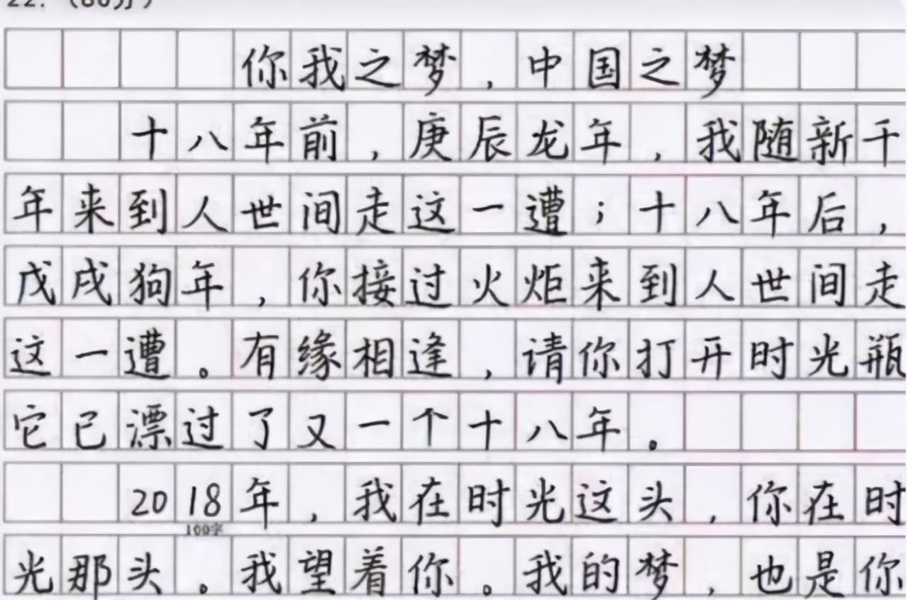 我们发现这位学生写得字迹和衡水体很相似,都是靠用心和干净整洁取胜 ,并且这样的字迹也容易上手,让更多的学生可以练习。从她的满分作文中,我们更知道了练习一手好字的重要性。