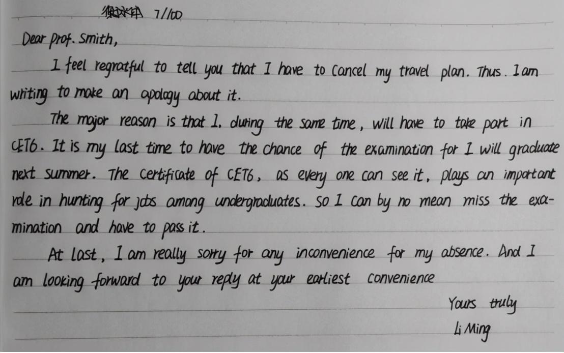 从整篇文字看娟秀飘逸。但相对的,倾斜的笔画在高考阅卷机中可能显示得不太清晰 。