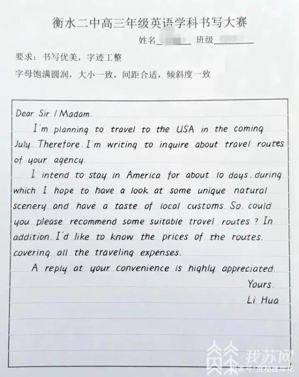 对于学生而言,写出一手好字是很重要的,不仅能够培养学生的学习习惯,还能够影响到考试的分数。最近,几份衡水二中的英语作文书写比赛在网络中走红,这些获奖作文,字迹工整,如此独特的字体引来不少学生模仿。对此,有老师表示没有必要刻意模仿,但是书写需工整清晰。