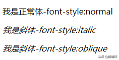 这个属性就总共2个状态:正常(normal)、斜体(italic、oblique)