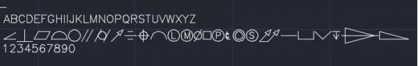 GDT.SHX,学机械的同学应该很熟悉,中间这行就是常用的机械符号(PS:之前有个小伙伴TOLERANCE命令出来的机械符号画不出,就是这个字体丢失所致)