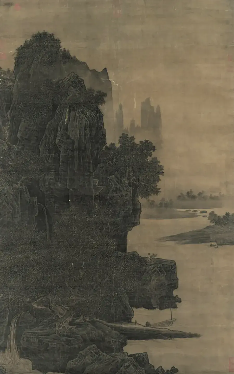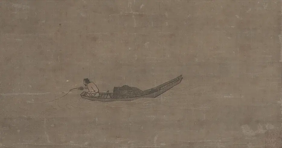 看马远的《寒江独钓图》,整幅画只一叶扁舟,寥寥几笔水波,一人独钓于舟上,剩下的,尽是大量的空白。