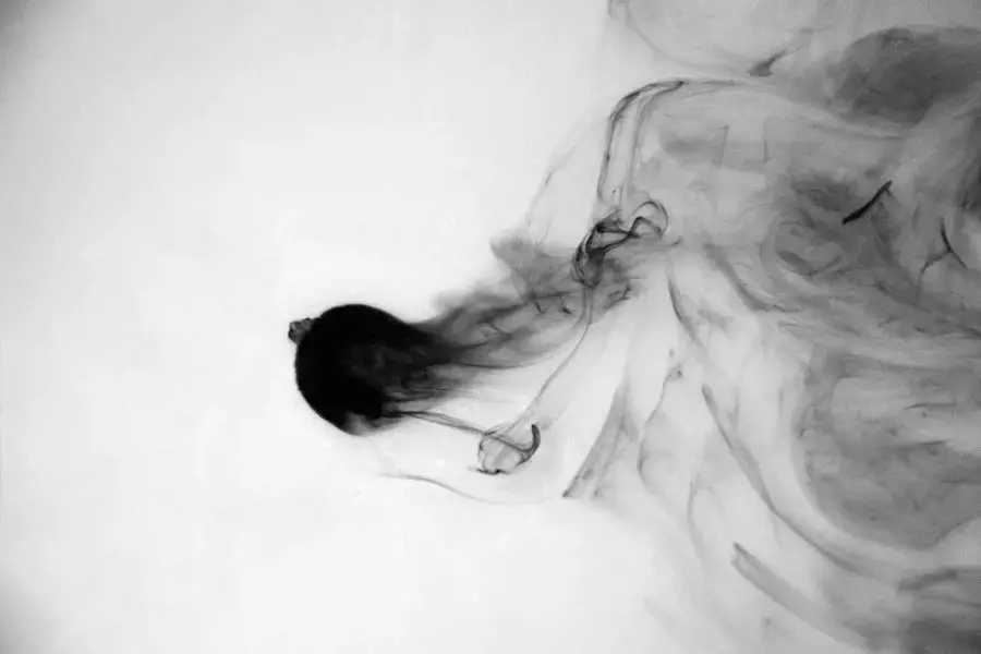 一团水墨在白纸上氤氲散开,笔锋落下处,看不到任何笔画的走势,仿佛没有筋骨,没有重痕,成云,成烟……简简单单的,只有黑白二色,便构建了一个广阔的世界。