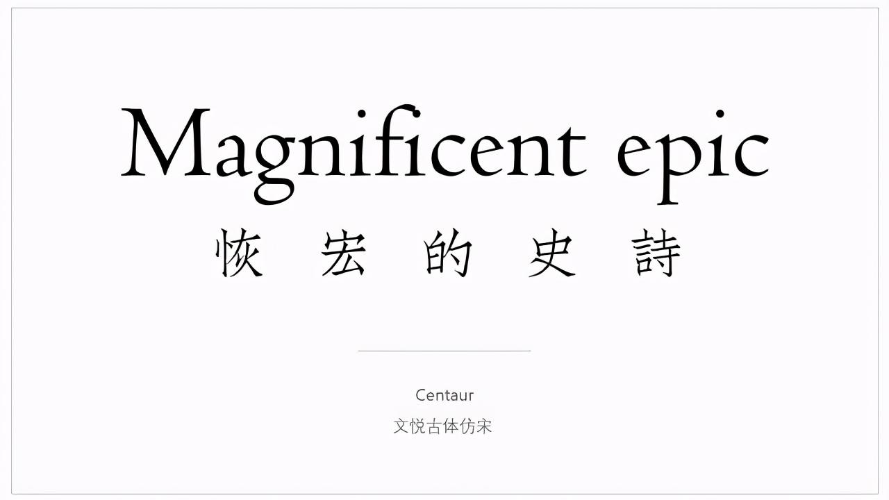 如果是拿来用在 PPT 中,效果也非常棒,相当于中文字体中的复古字体,兼顾风格特征和易读性。用在一些古典风的PPT中,绝对吸引眼球!