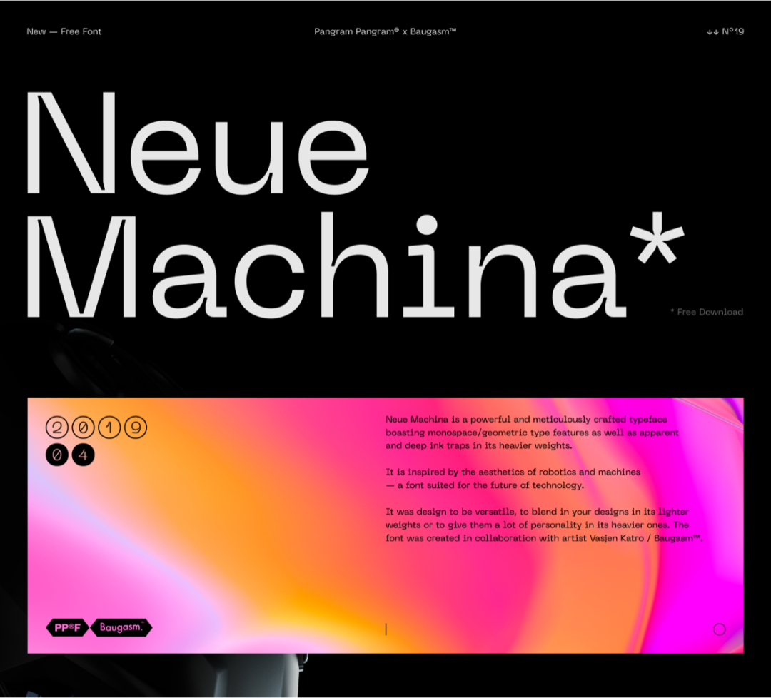 NeueMachina是一款科技感很强的字体,灵感来源于机器人。这两年小米和特斯拉相继发布了机器人,所以受机器人美学诞生的这款字体,给这些产品带来了很强的个性。