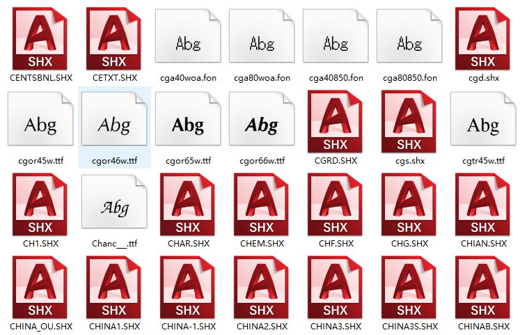 解压后将字体复制至CAD安装目录下Fonts文件夹内,或复制到C:\WINDOWS\Fonts,主要作用是防止CAD图纸中的附注、说明等变成乱码。