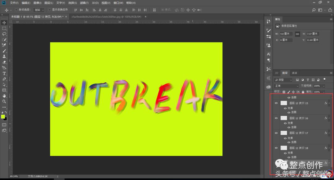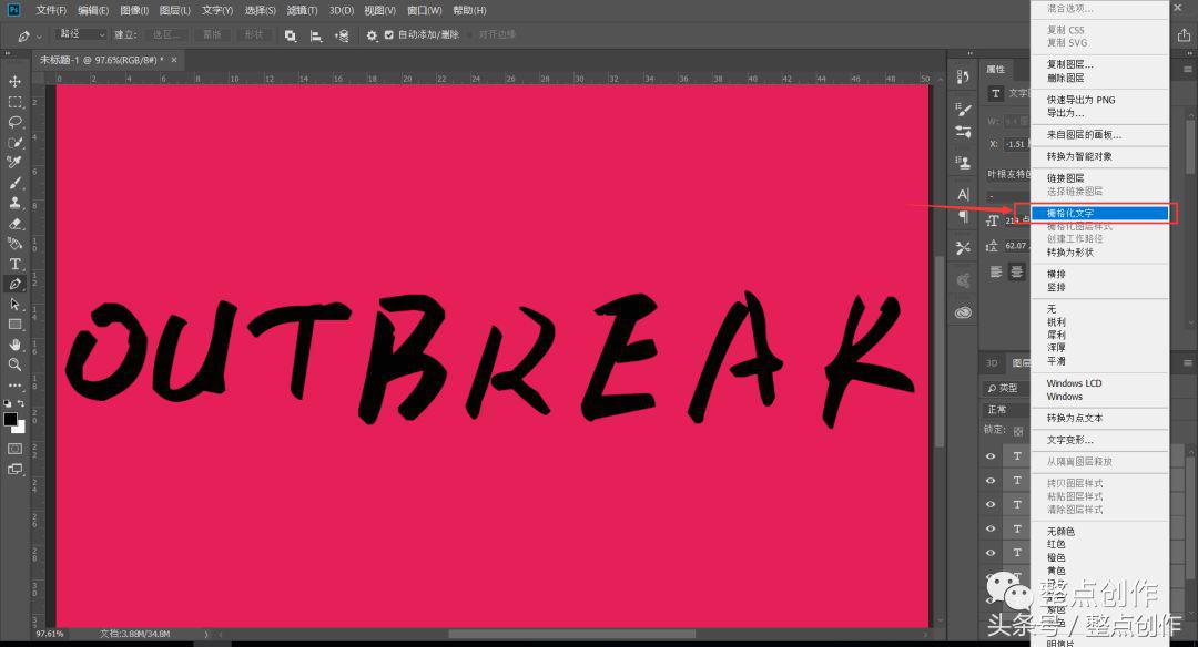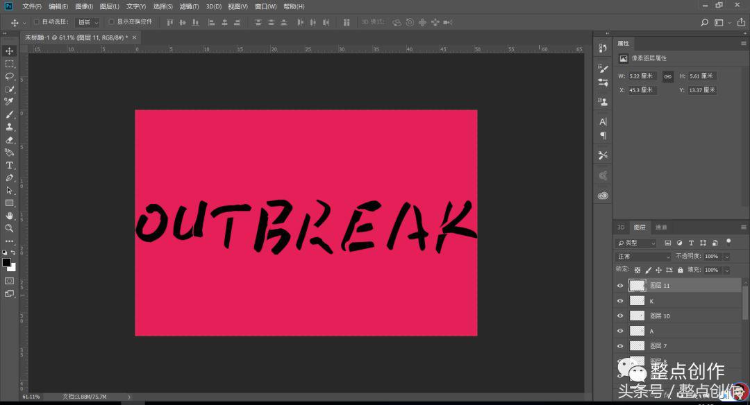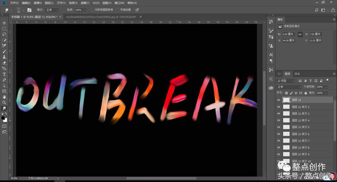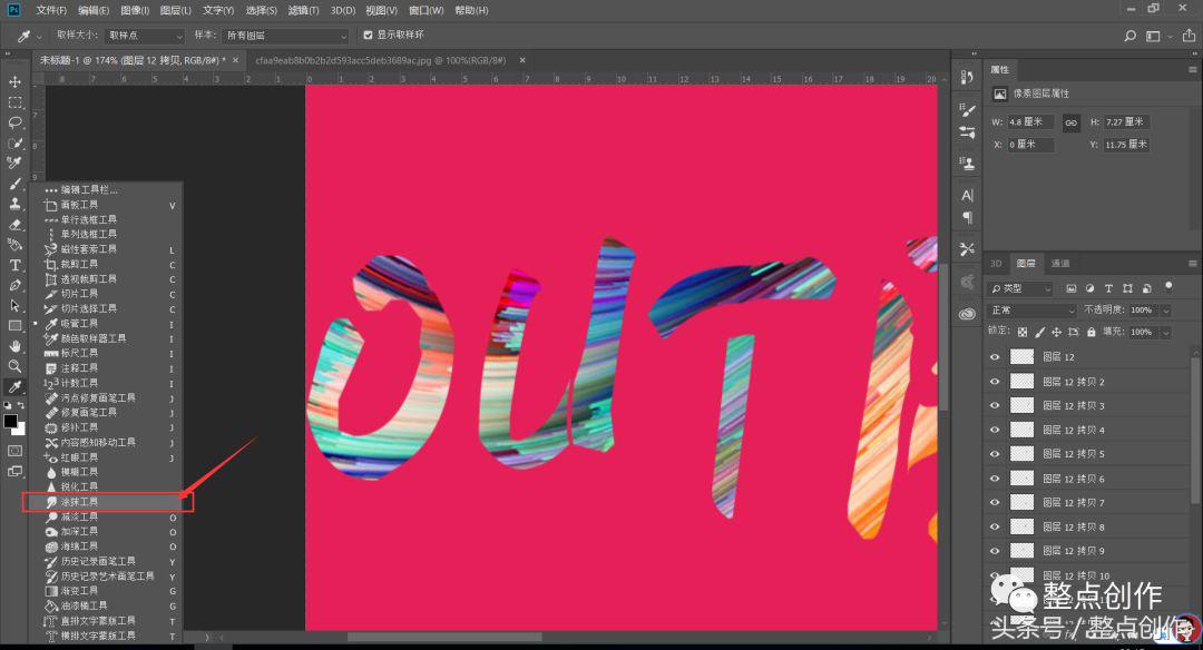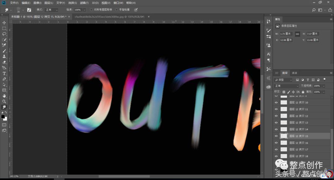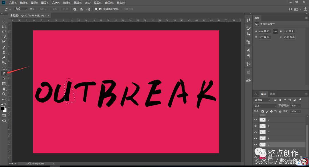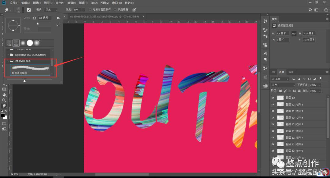 控制好笔刷强度。为了方便涂抹,按住Ctrl,左击需要涂抹的字体图层,创建选区,从而可在选区内肆意涂抹