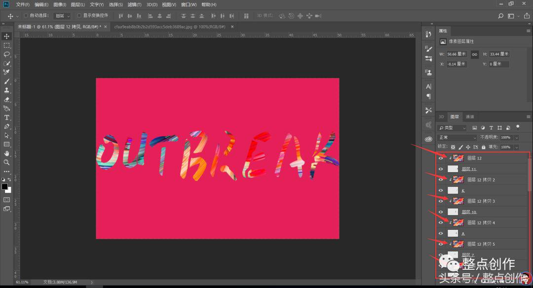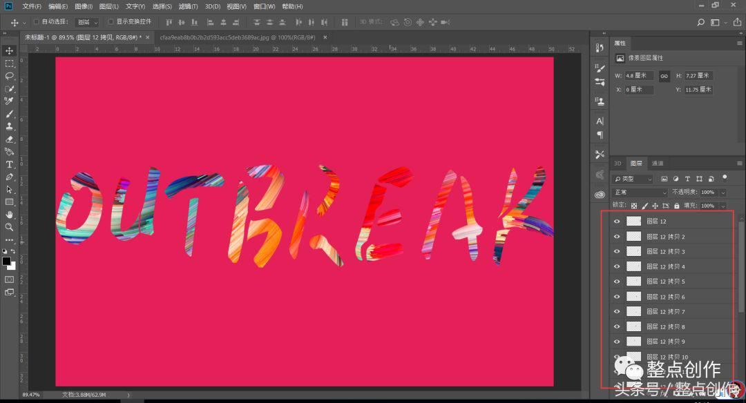 按住Alt,左击每一个素材图层与字体图层之间,从而创建剪贴蒙版