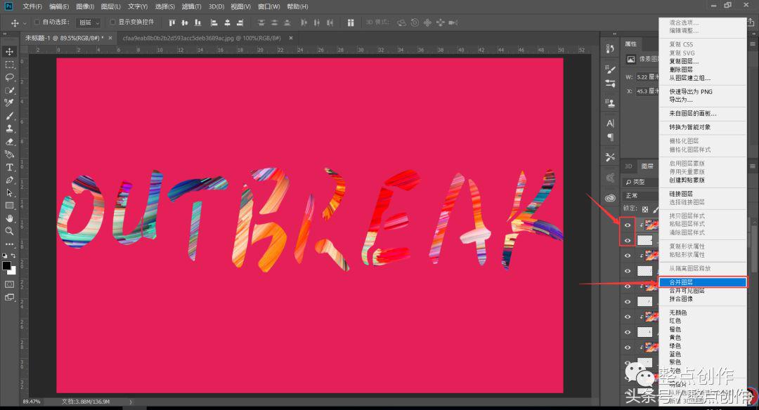 按住shift,选择每个创建了剪贴蒙版的图层,右击空白处,选择“合并图层”