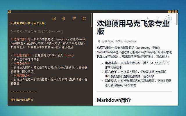 又一款优秀国产应用,大部分功能免费,并且提供了 Web 版和 Chrom App。正如其宣传语「专门为印象笔记打算的 Markdown 编辑器」所言,Marxico 的最大优势就在于可以直接将文档保存至印象笔记。
