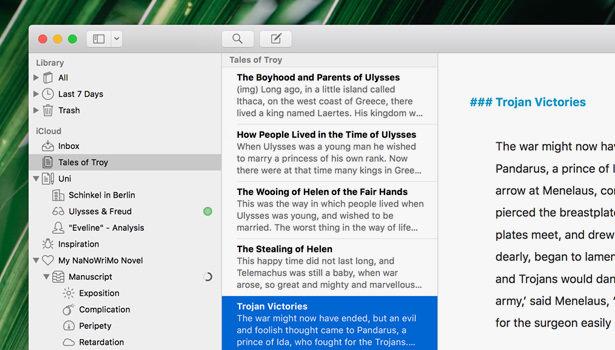 Ulysses 不仅是一款优雅的 Markdown 写作器,还是得力的文档管理助手,你可以将文稿分门别类,还可以快速查找筛选目标文稿,借助 iCloud 实现 Mac 和 iOS 无缝连接,没错,Ulysses 亦是 iOS 端备受好评的写作应用。