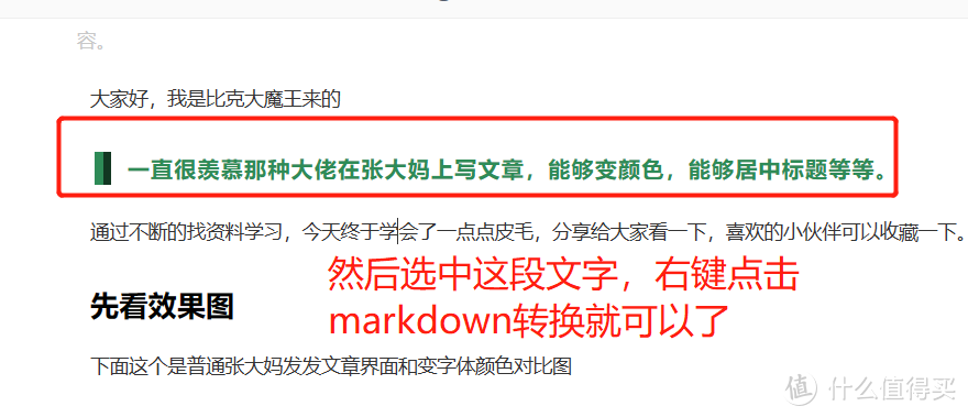 下面这个是普通张大妈发发文章界面和变字体颜色对比图