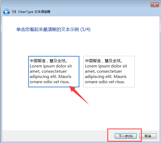 4、该流程会自动调整字体,你只需要点看的比较清楚的字体,再点“下一步”即可。