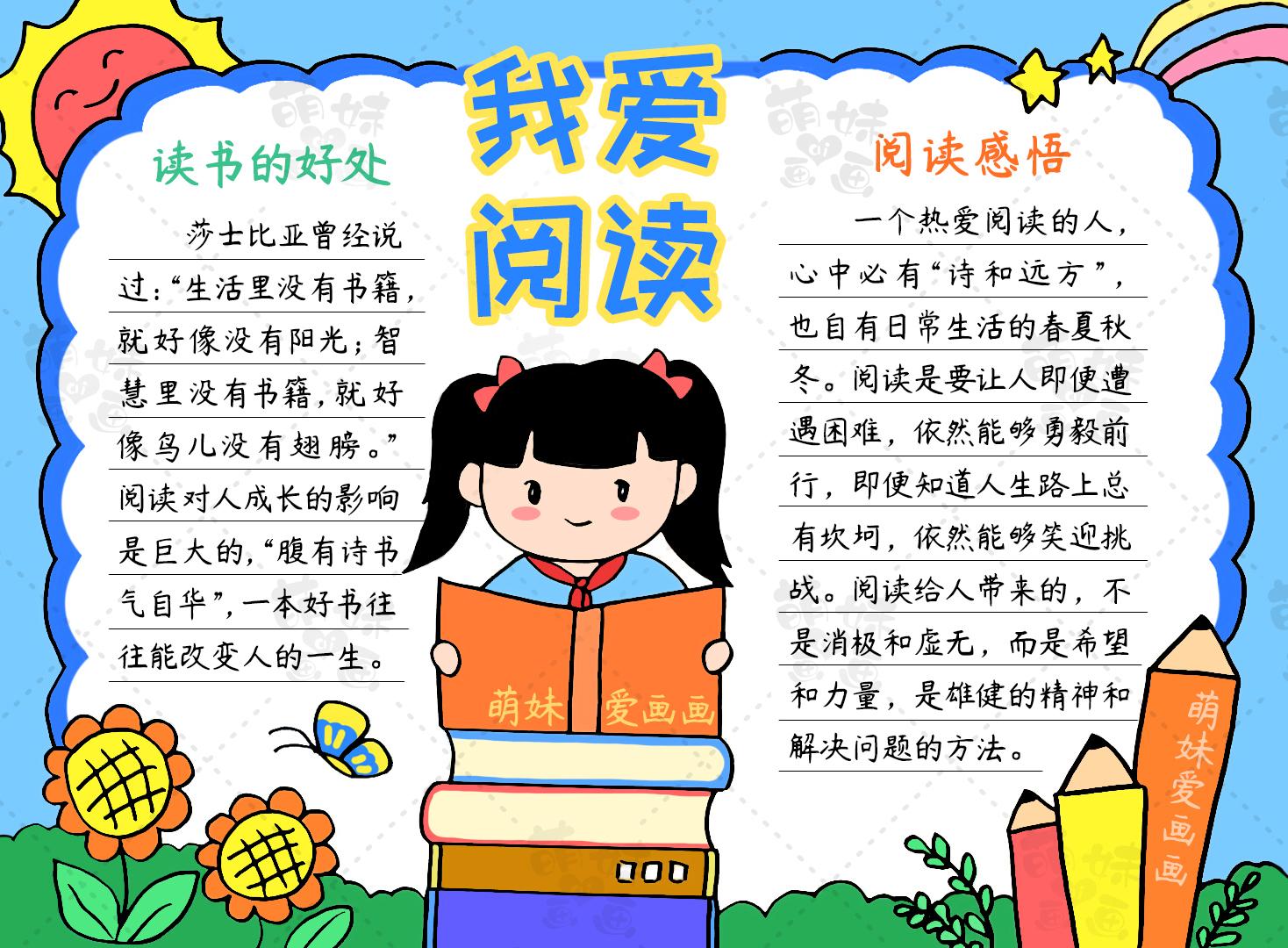 莎士比亚曾经说过:“生活里没有书籍,就好像没有阳光;智慧里没有书籍,就好像鸟儿没有翅膀。” 阅读对人成长的影响是巨大的,“腹有诗书气自华”,一本好书往往能改变人的一生。今天就和萌妹老师一起来画简单又漂亮的读书主题手抄报模板,含内容文字,希望大家用得到哦。