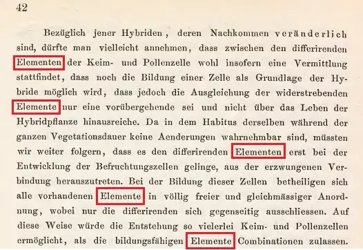 “ ……就经验而言,我们发现每一种情况下都证实,只有在卵细胞和受精花粉具有相同的天性 (Anlage)时才能形成不变的后代,正如纯种植株的正常受精一样…….”