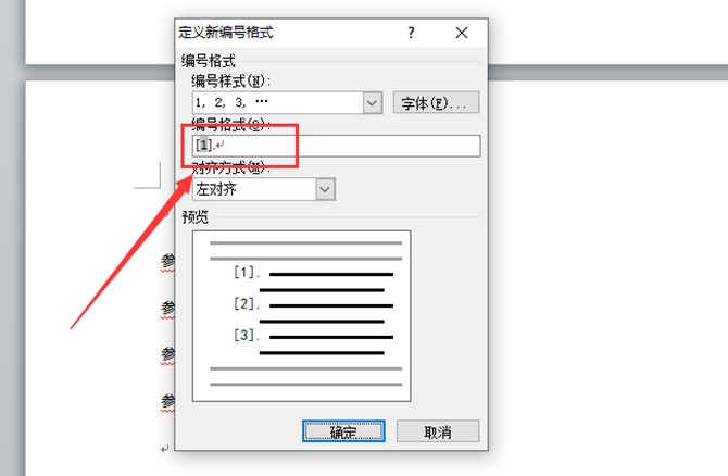 将编号格式里的“1”,手动添加英文符号“[]”,变为“[1]”后,选中参考文献即可自动排序。