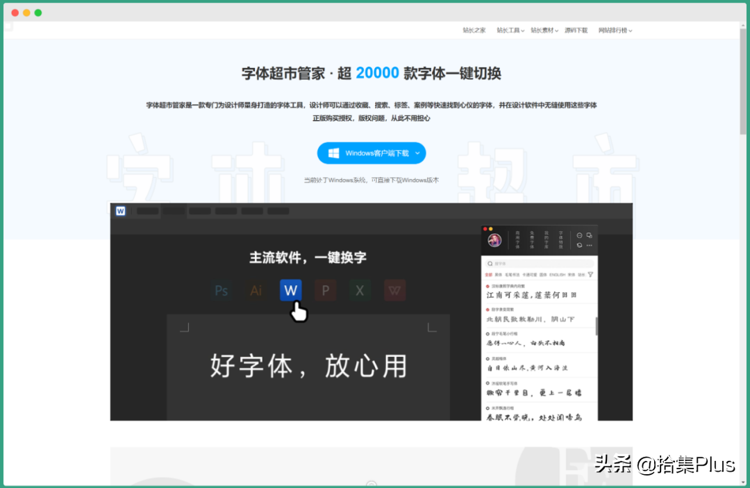 小编在 公众号 内已陆续分享了 iFonts 字体助手 、字由 、字加 等 同类软件 ,希望它们可以丰富大家的 字体库 。软件的 上手使用 并不难,先找字体 ,然后应用 就可以了,软件支持 可见 官网底部 的说明。字体超市管家 是由 站长之家 推出的,目前 软件官网 内说是提供 20000+ 的免费字体,这也是几款软件中 官方说明 中提到 免费字体 的 数量最多 的软件了,设计相关 的用户可以 收藏备用 。
