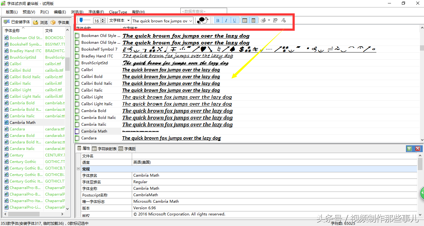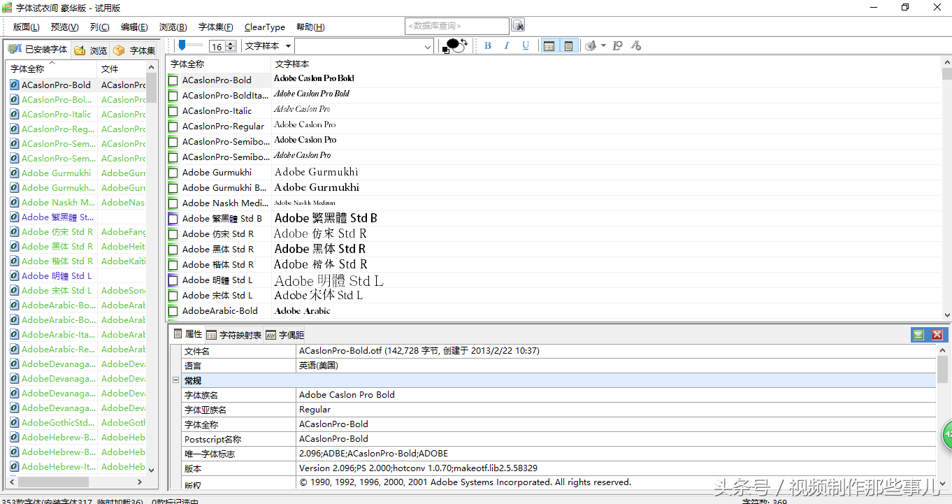 首先我们看一下预览: 你可以以列表形式预览自定义显示文本,而不必实际安装字体。