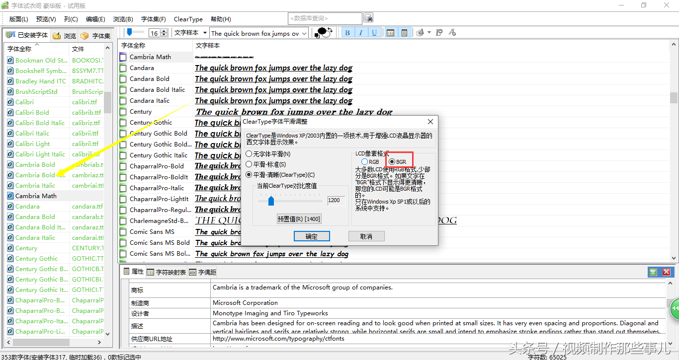 这项功能用于切换系统字体平滑设置。设置ClearType对比度值,或LCD RGB格式。调整后的效果会立刻显示出来。