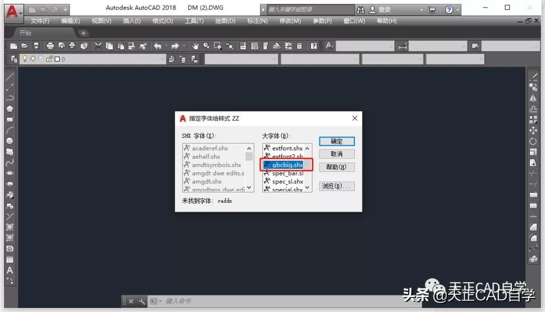 这个时候我们最方便的就是找一种相近字体替代,例如选择图中的gbcbig.shx(如下图)。