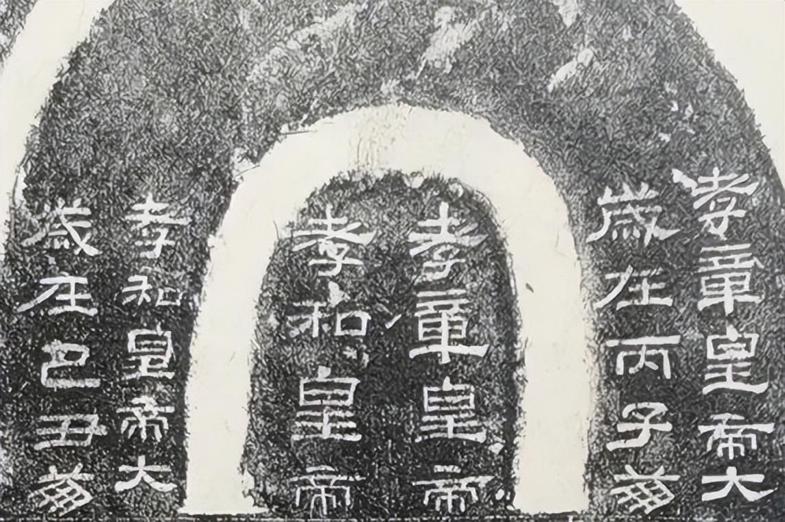 碑头晕环中间刻有文字两行,右行为“孝章皇帝”四字,左行为“孝和皇帝”四字,形如牌位状。