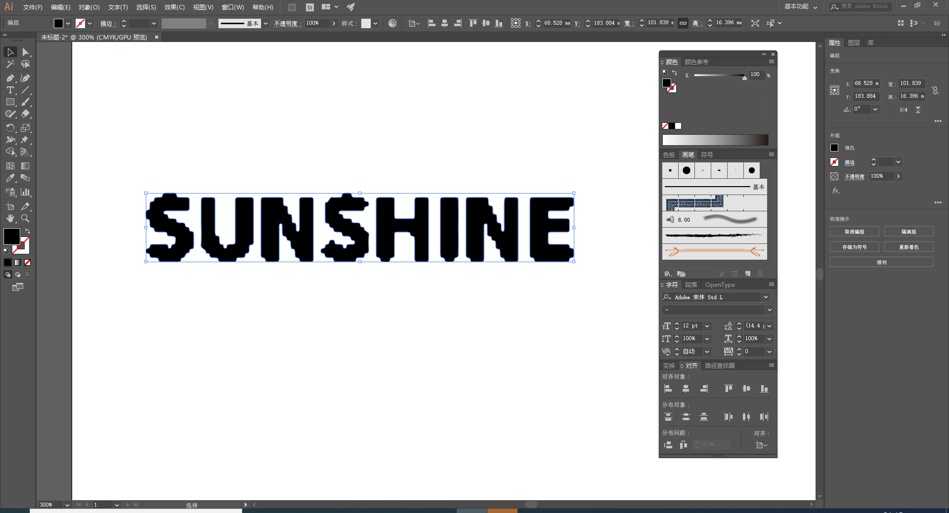 我们点击“图像描摹”右侧,选择“剪影”,然后点击“扩展”,这样,这个文字就转换成矢量的了。