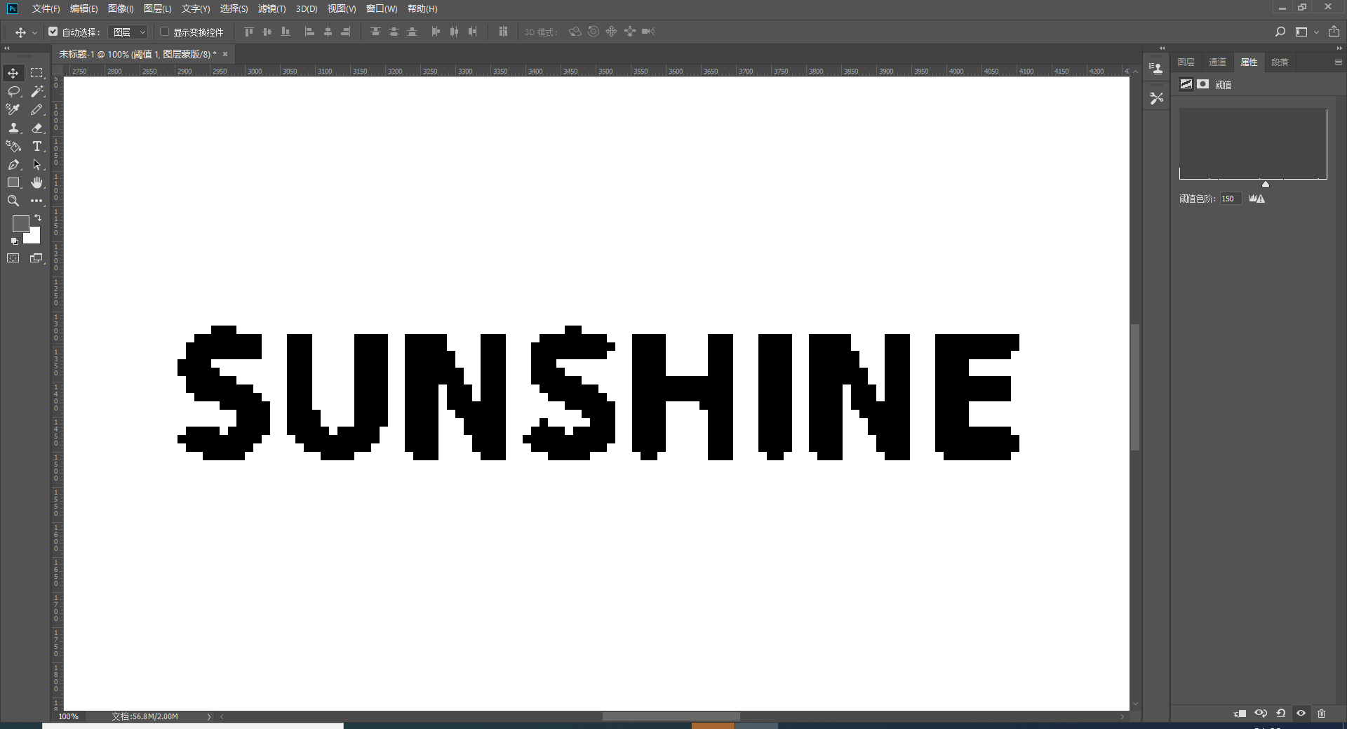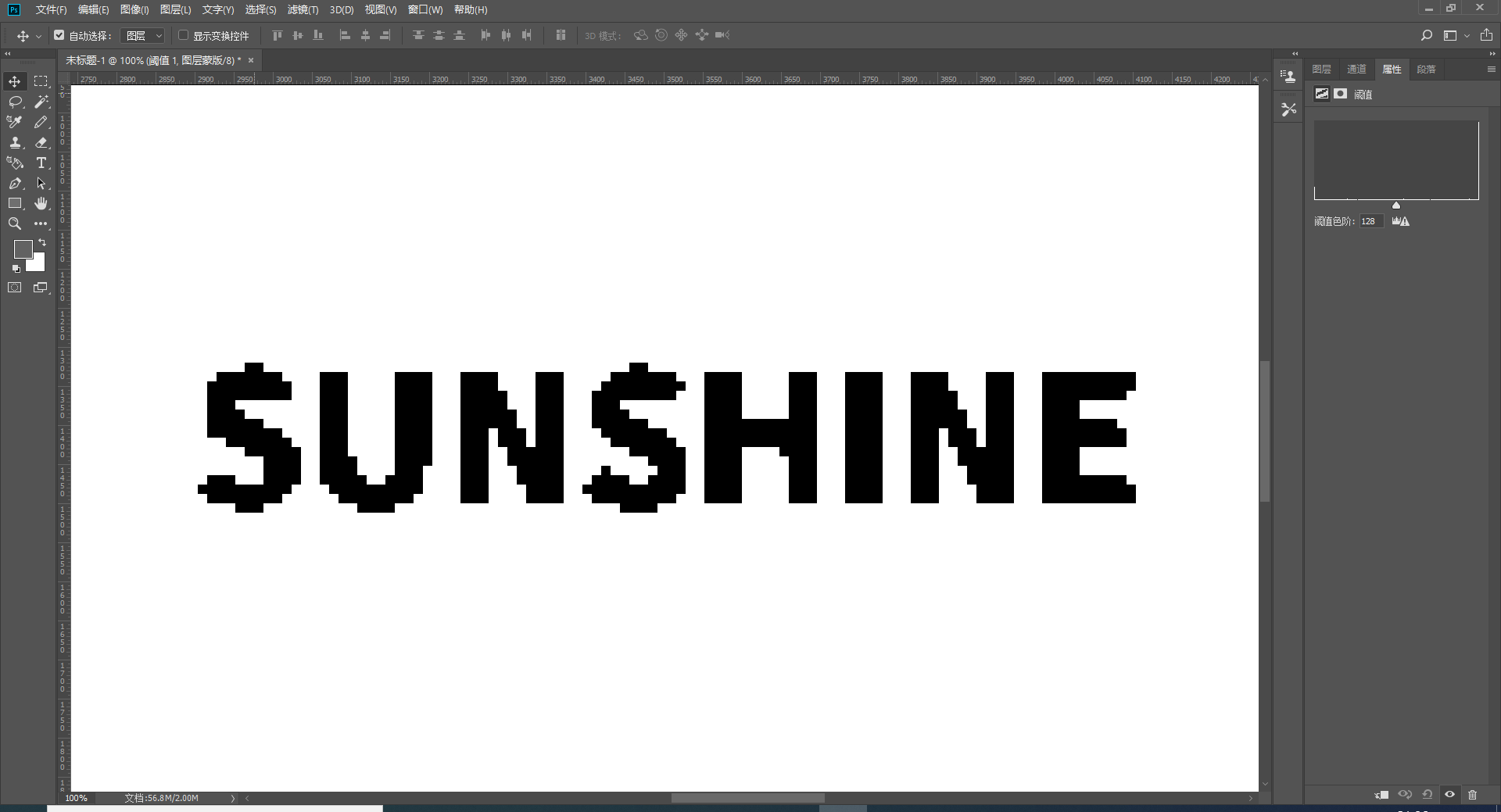 我们新建一个“阈值”调整图层,然后移动滑块的位置,调整文字的效果。