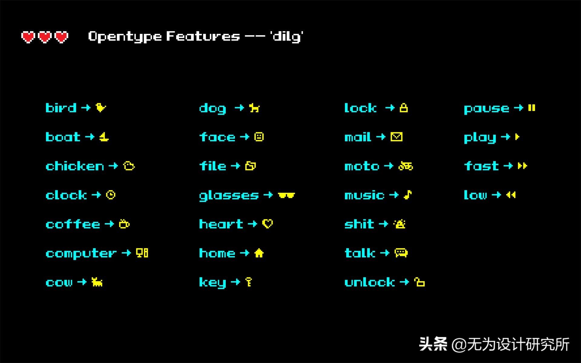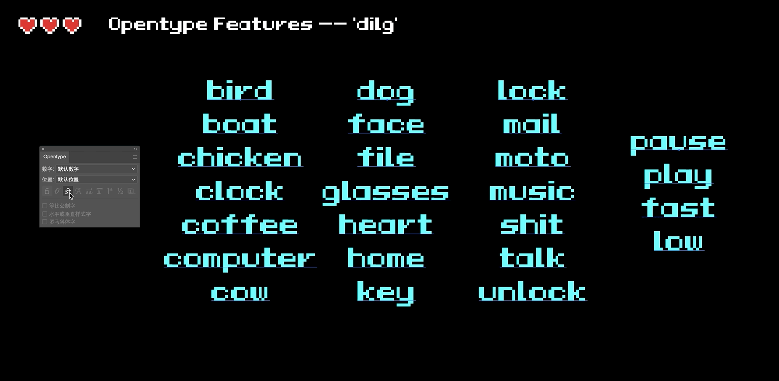 在 Ai 或者 Ps 中 Opentype 工具栏点击自由连字即可生成相对应 Icon(无聊的小功能)