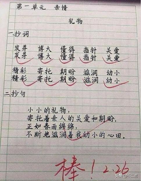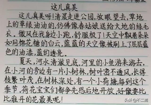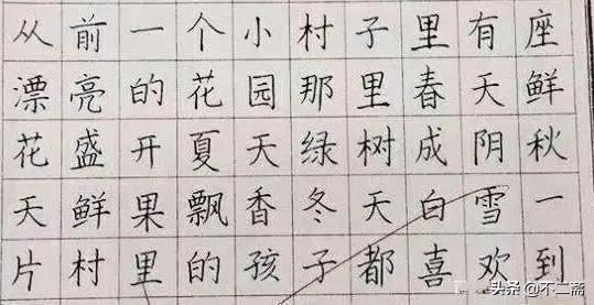 这样时间久了,还真涌现出一大批书法小能手,尤其是一些学习能力比较强的小学生,更是出类拔萃,有的小学生水平甚至赛过书法家,比如我们今天看到的图片就是一位三年级的学霸写得硬笔书法,其结构之完美堪称印刷体。