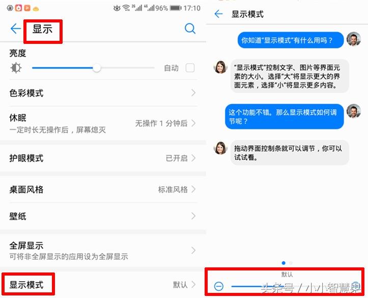 设置方式:【设置】-【显示】-【显示模式】,我们可以通过调节下面的滑动按钮,来设置出我们合适的显示大小。