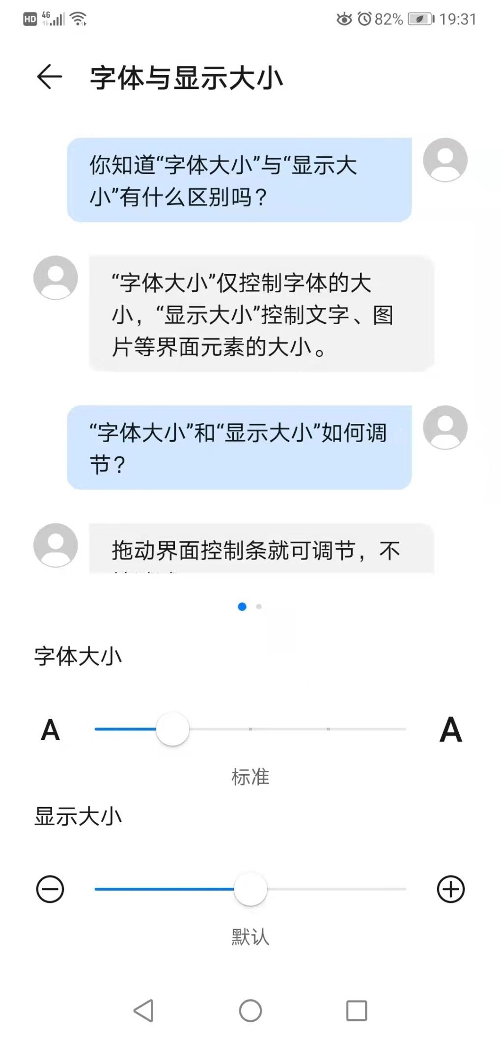 手机华为讨论回答(6)您可以按照以下方法操作:一、字体大小与粗细进入设置>显示和亮度>字体大小与粗细,拖移滑块调整字体大小或字体粗细。二、放大或...